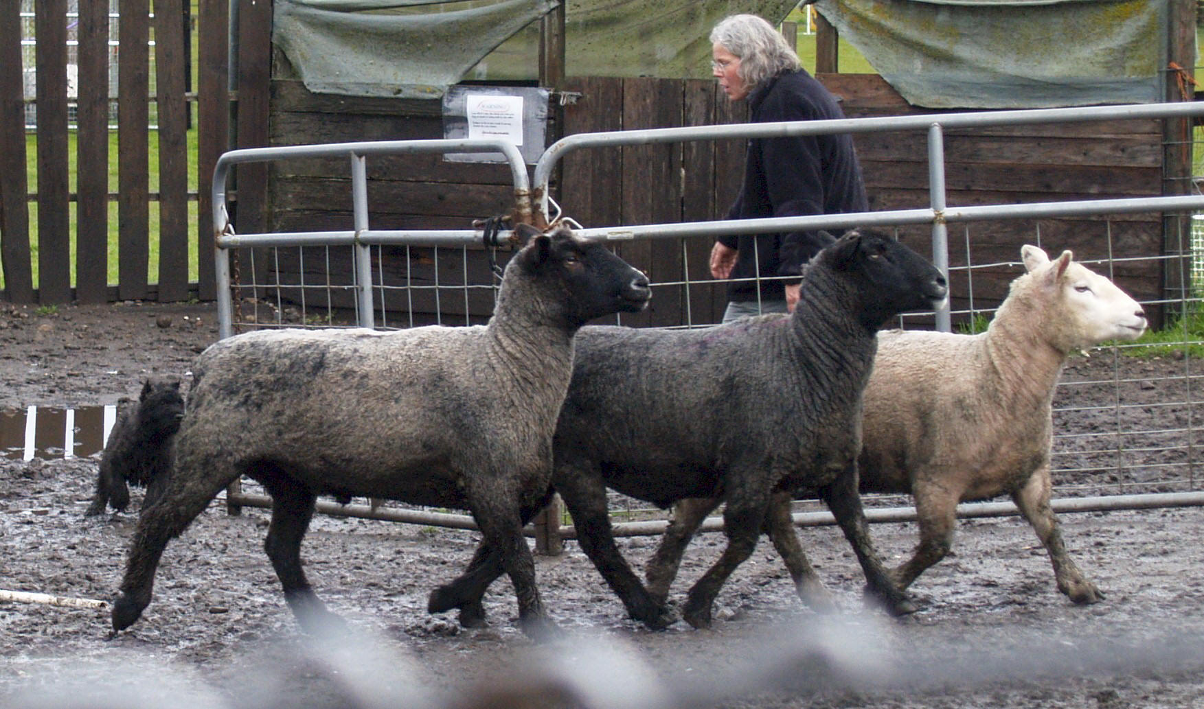 Tarzan seeing sheep for the first time when he was about 2.5 months old, with Elizabeth coaching him.