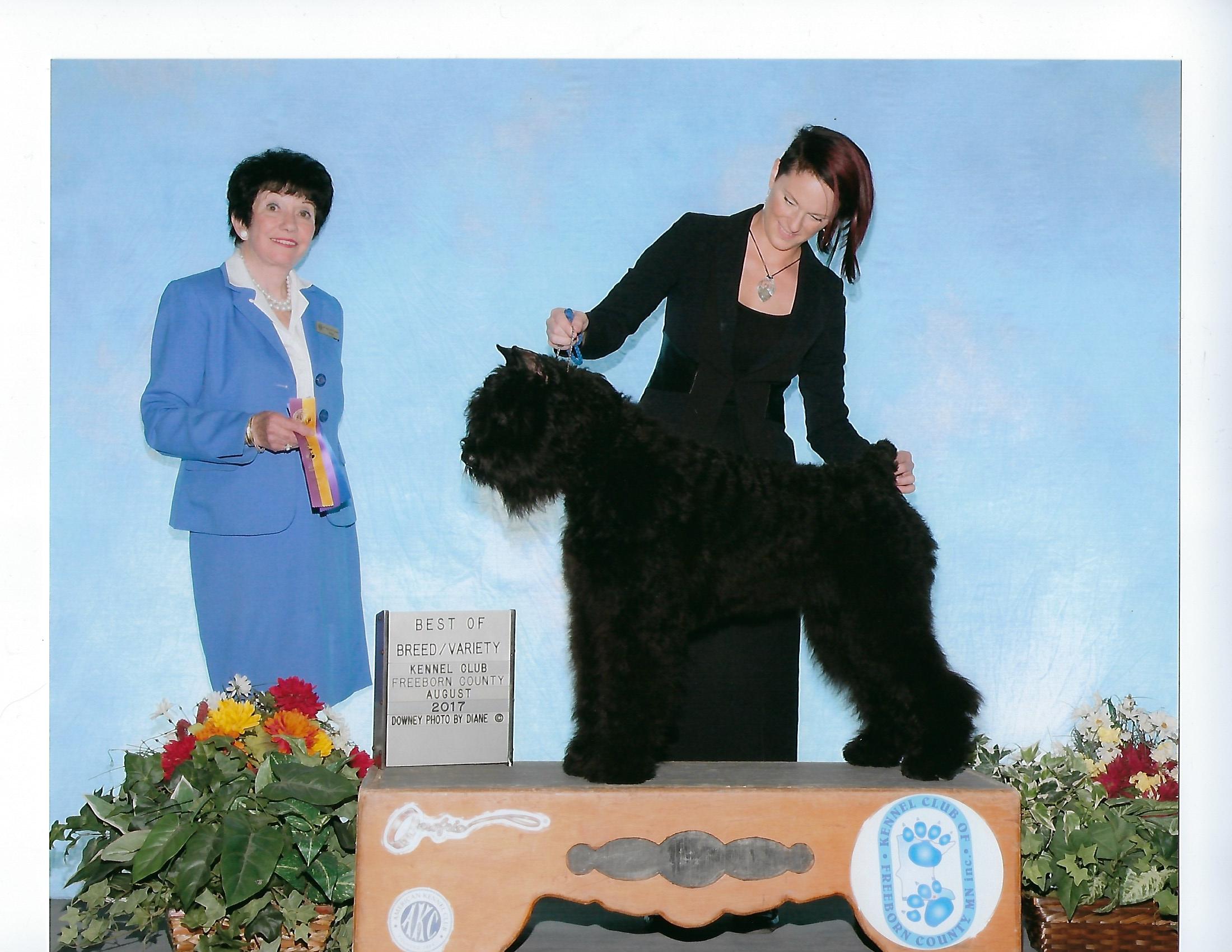 Please check out our "Pictures" page for pictures of some of our previous litters. Our "Extended Family" page includes pictures of some of the pups we have bred..... And of course, under "Our Dogs" each of our Bouviers have their own pages with pictures............enjoy the photos! All of our pups are sold with a contract and written health guarantee. Please contact us for copies of our contract if you are interested in a pup. If you are just considering a Bouvier, please do your research! This is not the breed for everyone. Our Links page has links to lots of great sites that will give you more information on the breed, what to look for, and people you can contact.